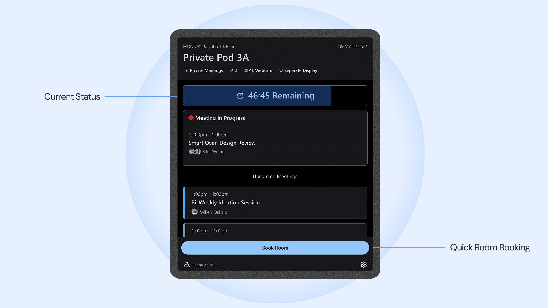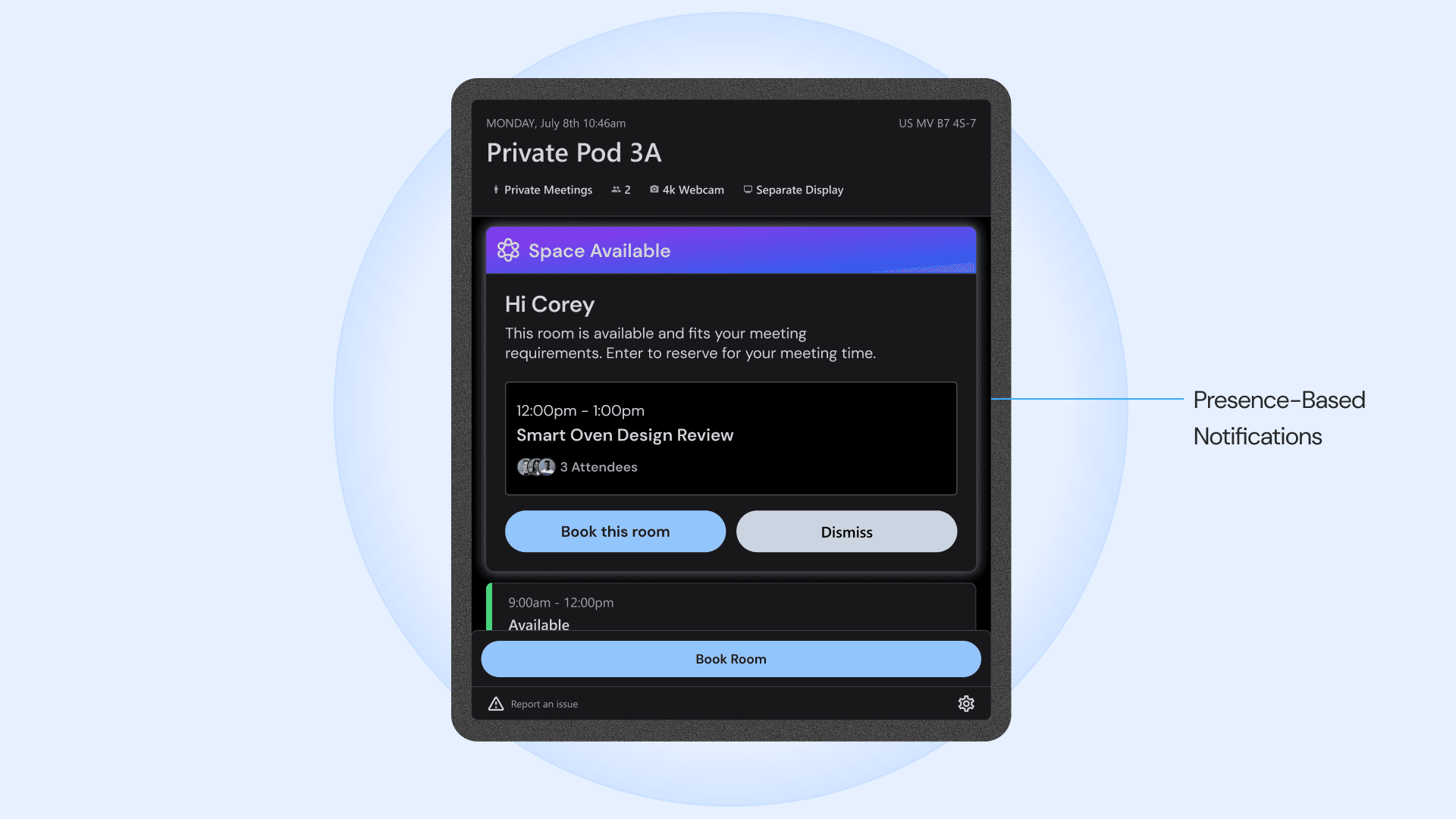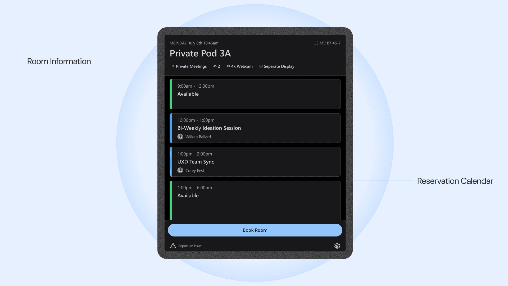 Provides a real-time, room-specific interface that bridges people, schedules, and space.
