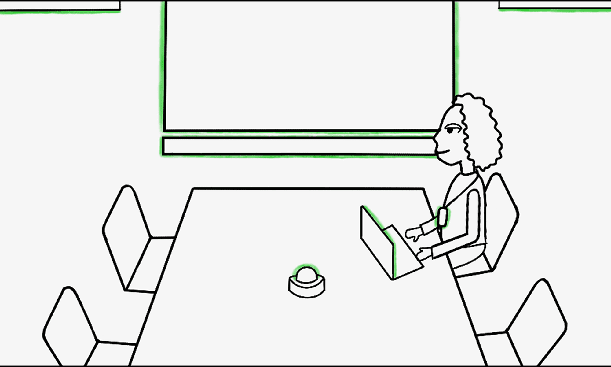 Sabina, a 27 year old project manager, struggles to find her booked room, wastes minutes untangling wires and misses the start of her hybrid meeting.